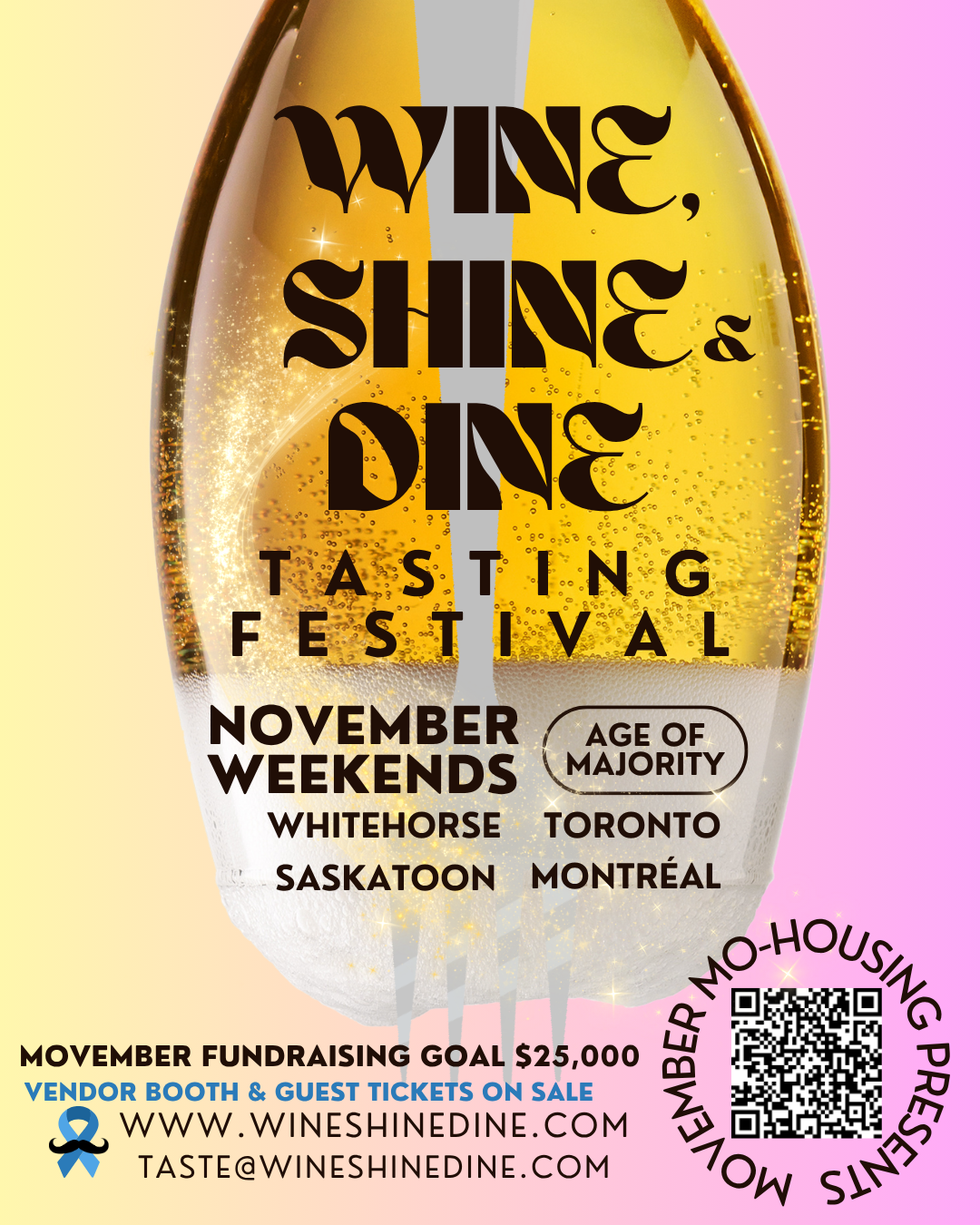 The Wine, Shine and Dine is an official MO-MENT for MOVEMBER MO-HOUSING with a competitive goal to raise the most $25,000